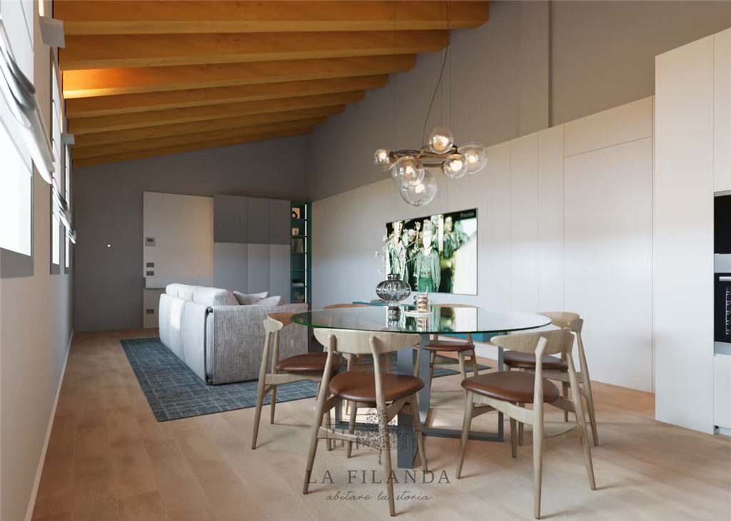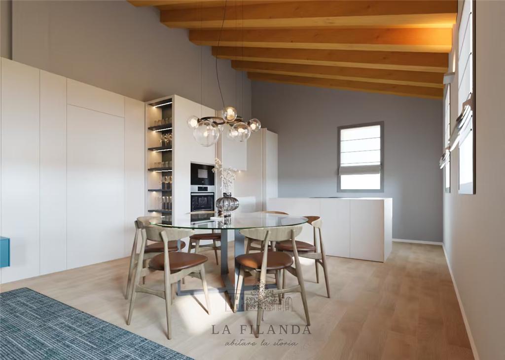 In esclusiva residenza in villa d'epoca oggetto di un restauro globale del 2023 proponiamo ampio appartamento totalmente mansardato con travature a vista e con finiture di alto livello. L'immobile ubicato al piano primo ed ultimo su fabbricato con sole 4 unità abitative e si compone di una zona giorno di circa 50 mq molto luminosa, disimpegno, 3 comode camere, 2 bagni, ripostiglio con collettore impianti, garage al piano terreno e posto auto riservato.