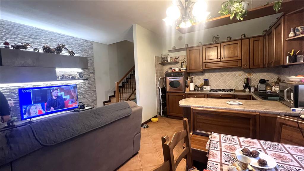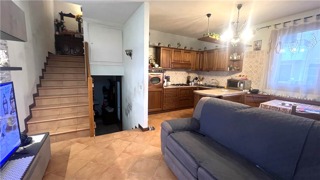 Veramente carina questa porzione di quadrifamiliare di angolo del 2002 disposta su falsi piani e composta al piano terra da grazioso soggiorno con angolo cottura con uscita sul giardinetto di proprietà, al piano rialzato troviamo un ampio bagno con vasca idromassaggio, al piano 1° camera matrimoniale e camera singola 2 poggioli e dopo altri 6 scalini altra stanza mansardata. Al piano seminterrato garage e bella tavernetta di circa 20 mq con canna fumaria e caldaia a pellet.